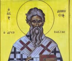 Ο Άγιος Ιερομάρτυρας Διονύσιος ο Αρεοπαγίτης, είναι ο πολιούχος άγιος των Αθηνών. Η μνήμη του εορτάζεται στις 3 Οκτωβρίου. Είναι προστάτης των Δικαστικών και του Δικαστικού Σώματος. Γεννήθηκε στην Αθήνα το ένατο έτος μετά από την γέννηση του Χριστού. Διετέλεσε μέλος του Ανώτατου Δικαστηρίου του Αρείου Πάγου.