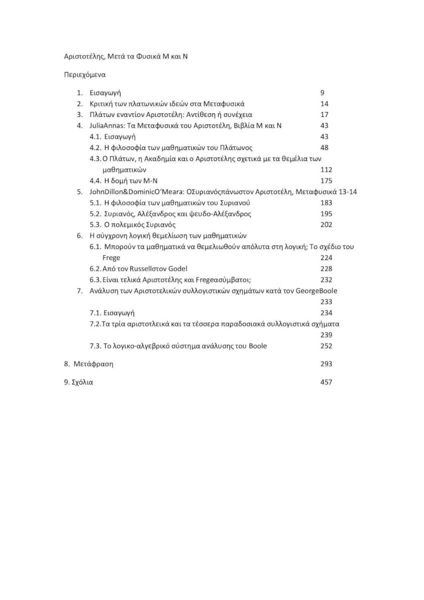 ΑΡΙΣΤΟΤΕΛΗΣ: ΜΕΤΑ ΤΑ ΦΥΣΙΚΑ ΒΙΒΛΙΑ Μ΄- Ν΄