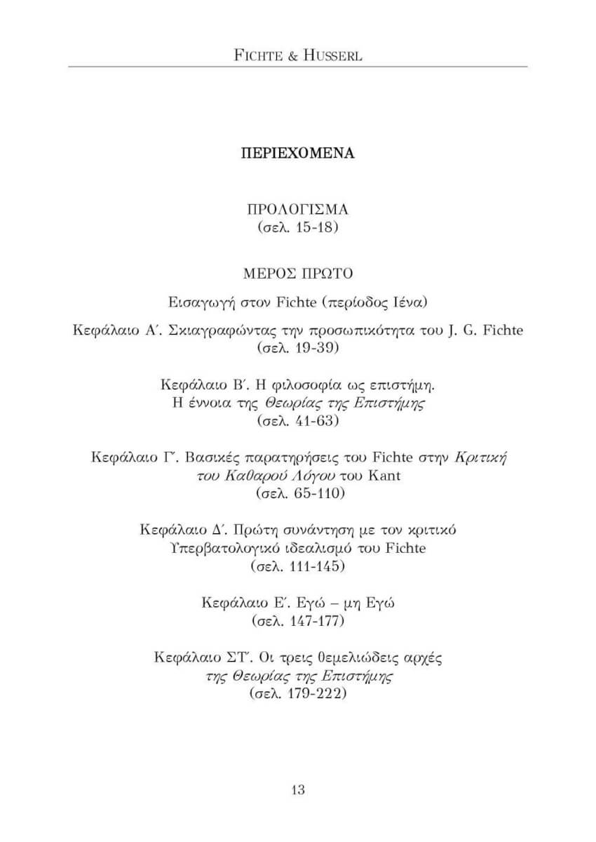 Εκείνα όμως τα χρόνια δημοσιεύθηκε το μικρό θεμέλιο της όλης θεωρίας της επιστήμης, θεμελιακό έργο της γερμανικού ιδεαλισμού. συγχρόνως με την εισαγωγή στον Fichte την εποχή που ήταν καθηγητής στο πανεπιστήμιο της Ιένα, το παρόν βιβλίο σηματοδοτεί και τις απαρχές μια έρευνας γύρω από τις δυνατότητα παράλληλης ανάγνωσης του κριτικού ή υπερβατολογικής φαινομενολογίας του Husserl, κυράρχου φιλοσοφικού ρεύματος του 20 ου αιώνα.