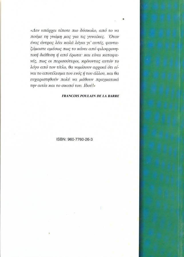 | Ξενόγλωσσος τίτλος | DE L’ EGALITE DES DEUX SEXES |
