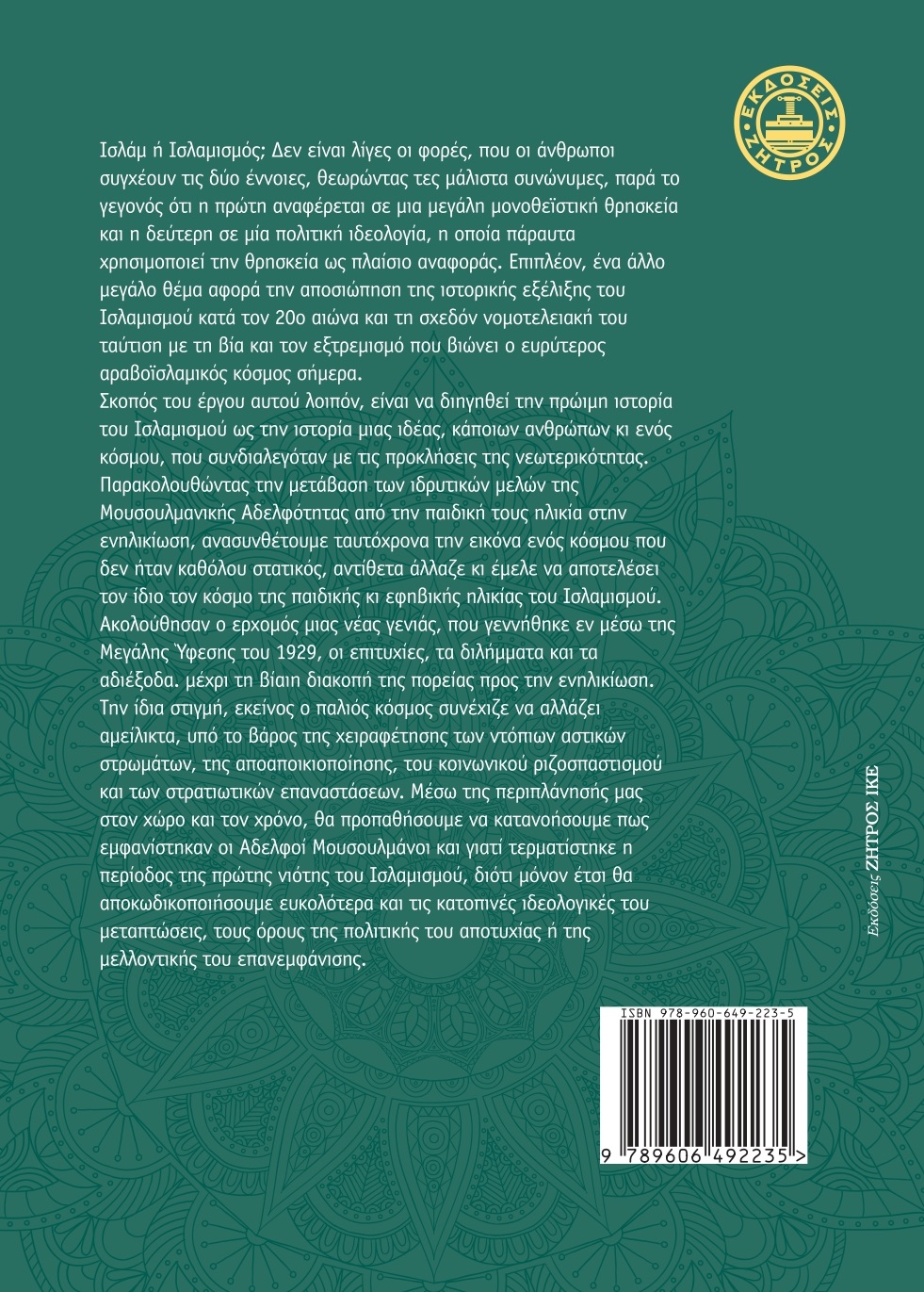 Σκοπός του έργου αυτού λοιπόν, είναι να διηγηθεί την πρώιμη ιστορία του Ισλαμισμού ως την ιστορία μιας ιδέας, κάποιων ανθρώπων κι ενός κόσμου, που συνδιαλεγόταν με τις προκλήσεις της νεωτερικότητας. Παρακολουθώντας την μετάβαση των ιδρυτικών μελών της Μουσουλμανικής Αδελφότητας από την παιδική τους ηλικία στην ενηλικίωση, ανασυνθέτουμε ταυτόχρονα την εικόνα ενός κόσμου που δεν ήταν καθόλου στατικός, αντίθετα άλλαζε κι έμελε να αποτελέσει τον ίδιο τον κόσμο της παιδικής κι εφηβικής ηλικίας του Ισλαμισμού. Ακολούθησαν ο ερχομός μιας νέας γενιάς, που γεννήθηκε εν μέσω της Μεγάλης Ύφεσης του 1929, οι επιτυχίες, τα διλήμματα και τα αδιέξοδα, μέχρι τη βίαιη διακοπή της πορείας προς την ενηλικίωση. Την ίδια στιγμή, εκείνος ο παλιός κόσμος συνέχιζε να αλλάζει αμείλικτα, υπό το βάρος της χειραφέτησης των ντόπιων αστικών στρωμάτων, της αποαποικιοποίησης, του κοινωνικού ριζοσπαστισμού και των στρατιωτικών επαναστάσεων. Μέσω της περιπλάνησής μας στον χώρο και τον χρόνο, θα προσπαθήσουμε να κατανοήσουμε πως εμφανίστηκαν οι Αδελφοί Μουσουλμάνοι και γιατί τερματίστηκε η περίοδος της πρώτης νιότης του Ισλαμισμού, διότι μόνον έτσι θα αποκωδικοποιήσουμε ευκολότερα και τις κατοπινές ιδεολογικές του μεταπτώσεις, τους όρους της πολιτικής του αποτυχίας ή της μελλοντικής του επανεμφάνισης.