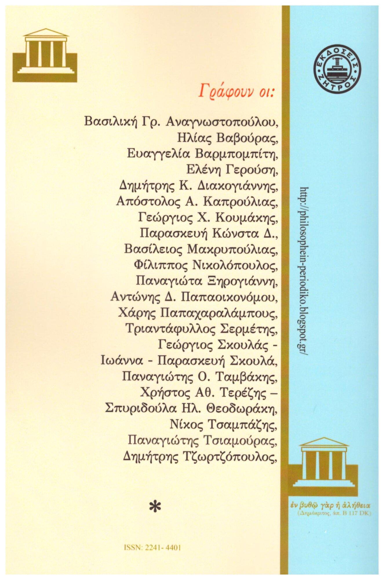 Ένα “επεισόδιο” της σχέσης τού «μαθήματος» με την «ἐπιστήμην» στον πλατωνικό διάλογο Λάχης (184b1-184d4), σελ. 235